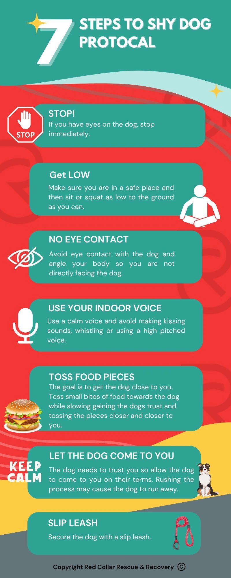 A lost dog is often frightened and should be treated with care. While many people may want to assist in the search, it's usually not effective to have a large group searching on foot. Instead, it's best to team up with family and close friends who are familiar with your dog. If you do decide to search with others, make sure they understand the Shy Dog Protocol and are ready to act if they spot your dog.
